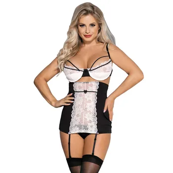 Lingerie Babydoll With Garter Plus Size Embroidery Open Butt Porno Sexy Lingerie